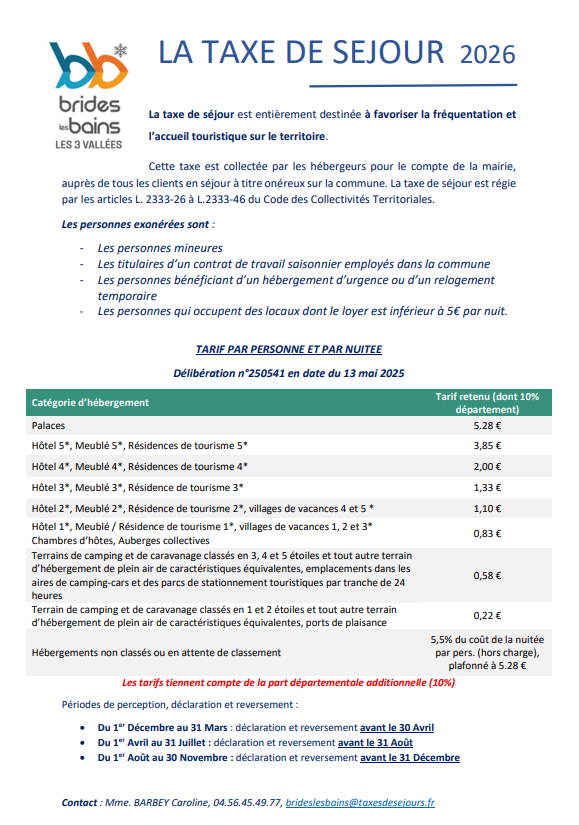 Tel : 06 26 76 73 08 - mail : brideslesbains@taxesdesejours.fr