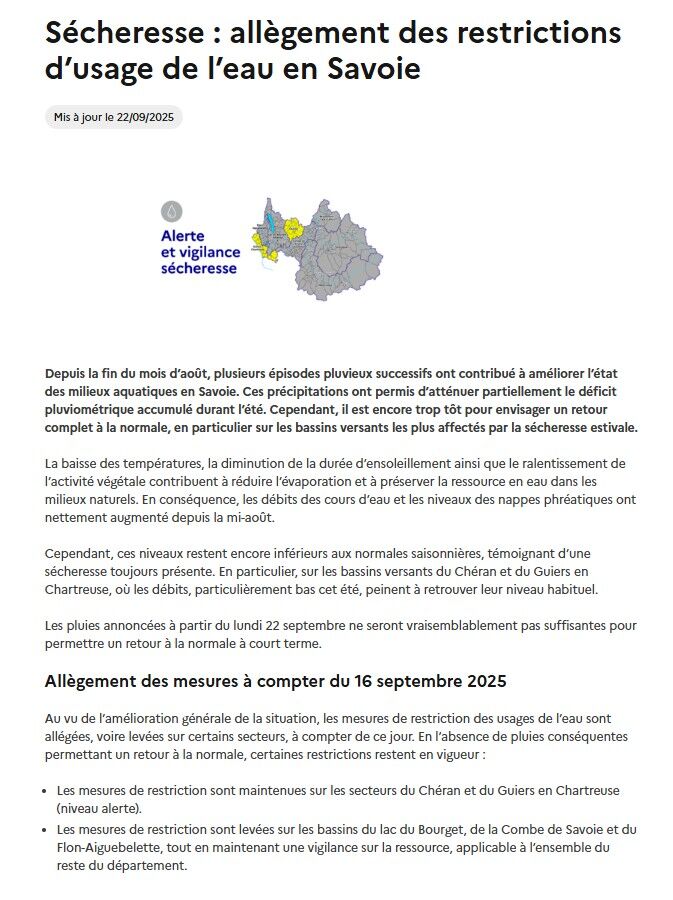 Arrêté préfectoral N°2025-1024 portant limitation des uasges de l'eau en Savoie