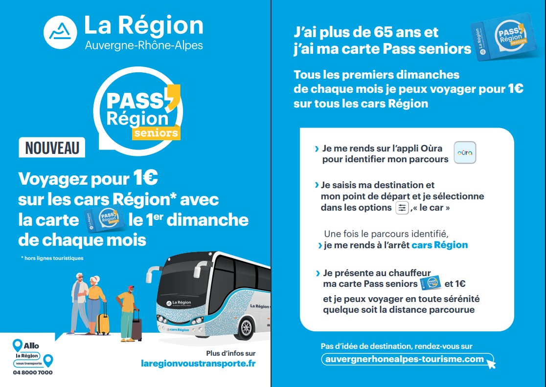 À partir du 1er février, tous les cars Région (hors lignes touristiques) accepteront la carte Pass Senior, disponible gratuitement auprès de la Région Auvergne-Rhône-Alpes.