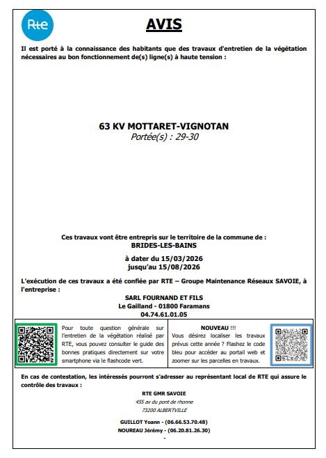 Conformément aux dispositions de l'article 12 de la Loi du 15 juin 1906 sur les distributions d'énergie et de l'arrêté du 17 mai 2001 relatif aux conditions techniques auxquelles doivent satisfaire les lignes de transport et de distribution électrique, des travaux d'élagage et d'abattage vont être entrepris prochainement sur le territoire, afin d'assurer le bon fonctionnement des lignes hautes tension mais également la sécurité des personnes aux abords de ces ouvrages.