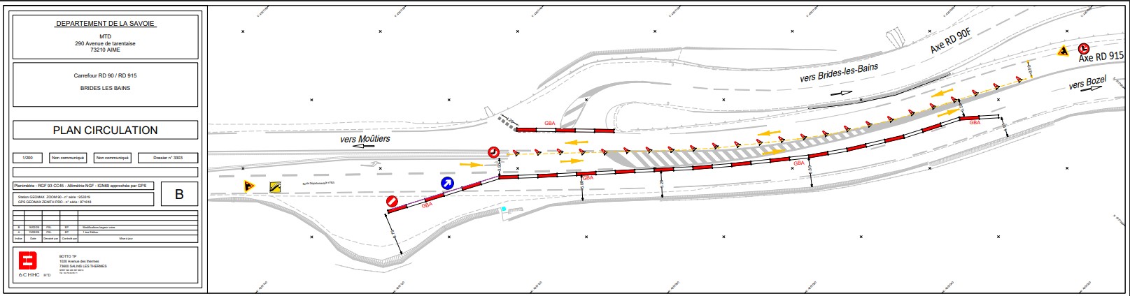 - La circulation sur la RD 915 est maintenue sur les trois voies existantes, avec une limitation de vitesse à 30 km/h et une interdiction de dépassement pour les véhicules autres que les deux‑roues, conformément à l’arrêté. L’entreprise travaillera sous protection effective par mise en place de barrières de type GBA positionnées en accotement de la zone de chantier, sans réduction du nombre de voies de circulation.