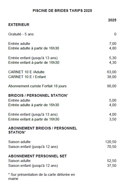 La piscine publique de Brides-les-Bains ouvre ses portes du 1er juin au 10 septembre 2025.