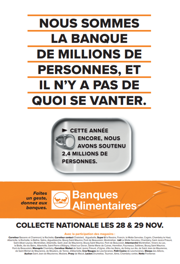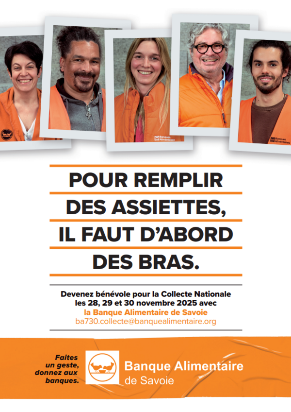 Les 28.29 et 30 (pour les enseignes ouvertes le dimanche) novembre 2025, la Banque Alimentaire de Savoie organise sa collecte dans une soixantaine de magasins du département.